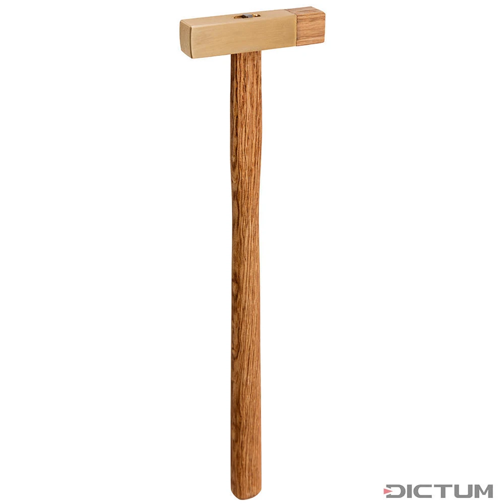 Marteau pour rabot combiné (surface de frappe en laiton/bois) pour l’ajustage du fer de rabot ainsi que pour la fixation et le desserrage du fer sur la cale ou sur le corps du rabot. Inserts interchangeables. Manche en chêne blanc.